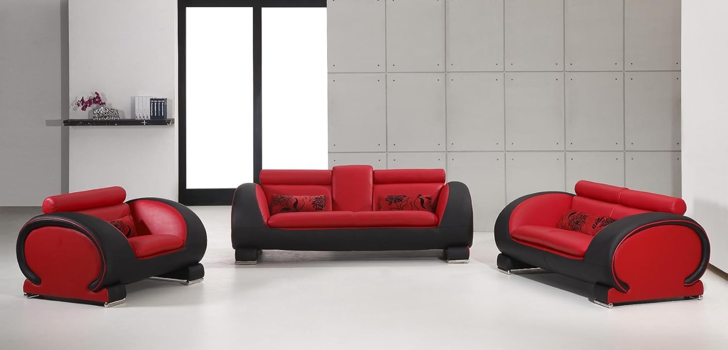 Multi-toned upholstery adds uniqueness and style to this sofa set. Sofa upholstery is made from quality real leather front and high quality leather match on the back for long-lasting use. Comfortable cushion for added body and back support. This set is composed of a sofa, loveseat and chair. Customizable leather covering by special order. Dimensions: Sofa W80" x D38" x H35" Love Seat W64" x D38" x H35" Chair W44" x D38" x H35"